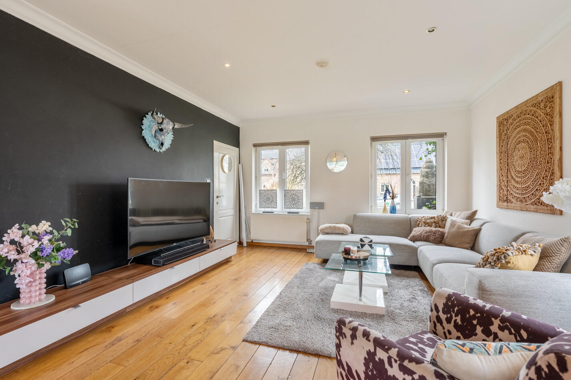 - Leefruimte met houten plankenvloer, inbouwspotjes, tv-aansluiting, thermostaat (Buderus);