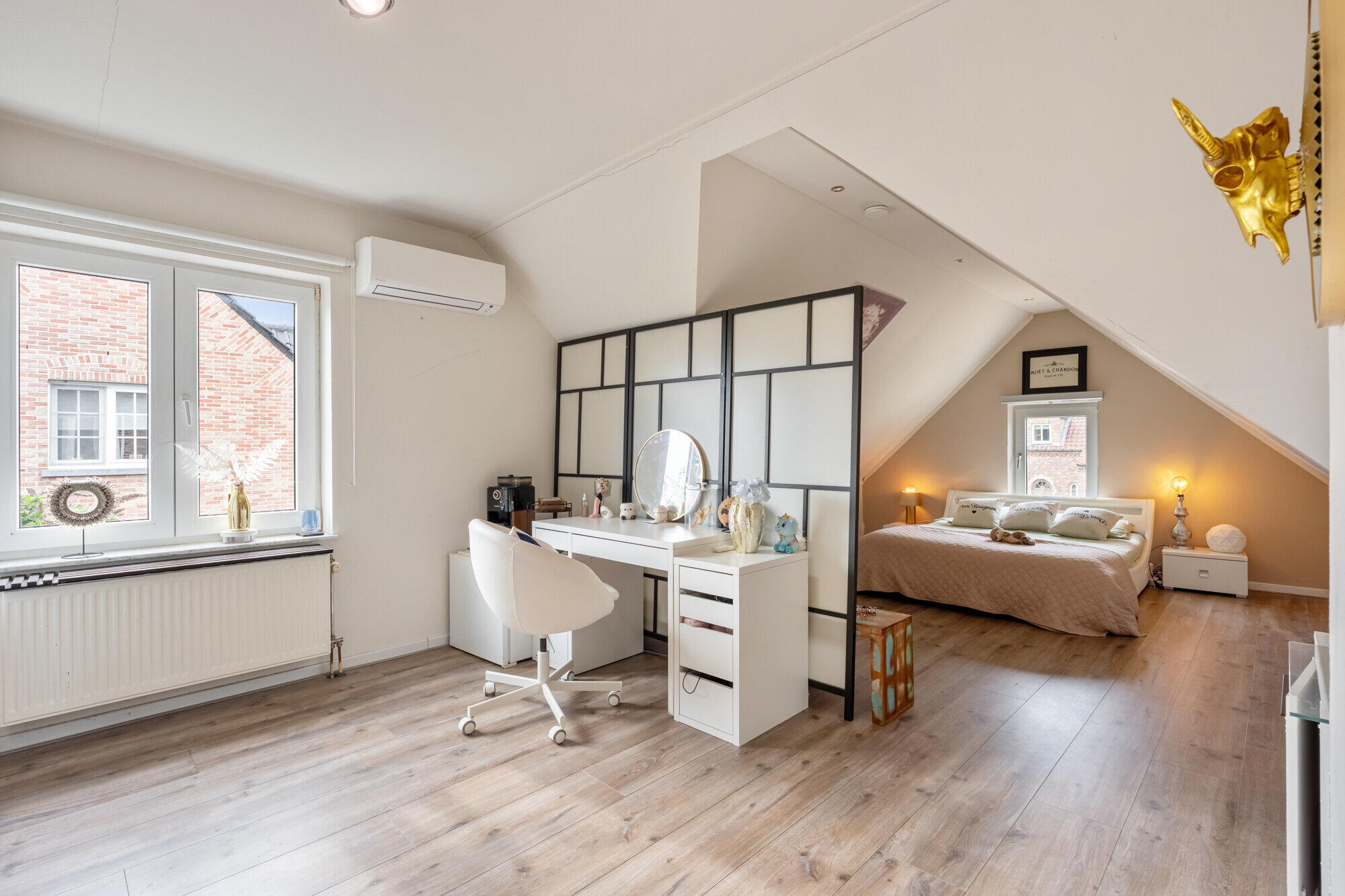- Slaapkamer 1 van ca. 30m², zicht op de voorzijde, voorzien van laminaatvloer, airco (Daikin) en radiatoren;